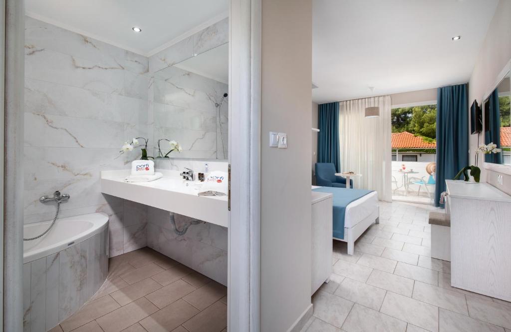 • priamo pri krásnej piesočnatej pláži • ležadlá a slnečníky sú pri bazéne a na pláži zdarma