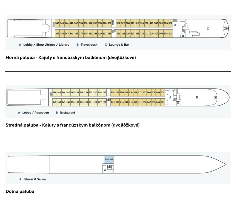 Na palube lode MS Arena (135 metrová luxusná loď - nanovo zrekonštruovaná) bude k dispozícii slovensky hovoriaci personál, takže sa budete cítiť príjemne a bez jazykovej bariéry.
